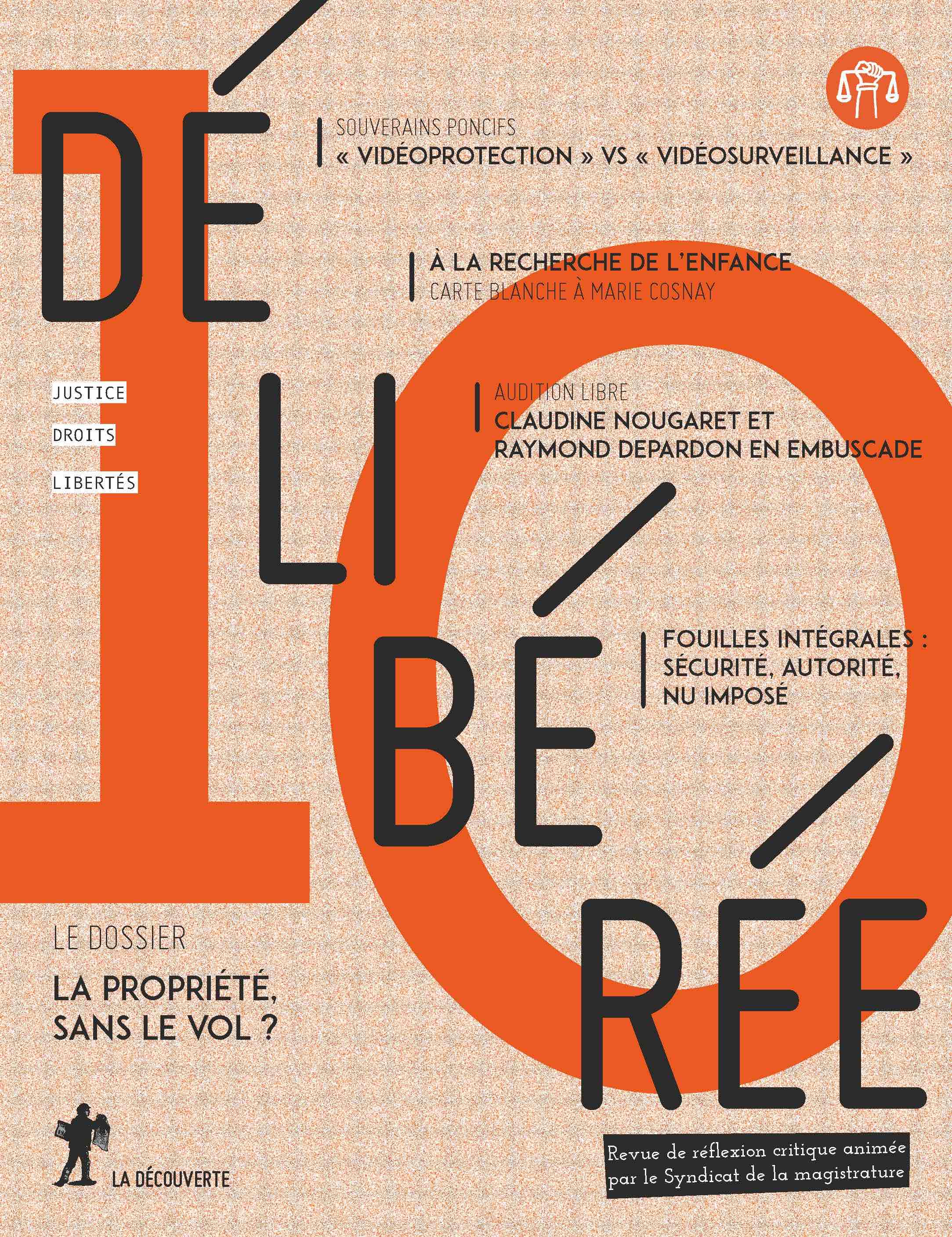 Le dossier de la revue est une variation autour de la question suivante : « la propriété, sans le vol ? ». Il s'agit, dans une logique émancipatrice, d'explorer les différentes dimensions, utilités et expériences de la propriété, qu'il s'agisse de celle des moyens de production, de propriété numérique et d'accès aux savoirs, d'accès au logement, ou, plus largement, de notre façon d'habiter la terre. Carte blanche a été donnée à l'écrivaine Marie Cosnay, engagée dans l'accompagnement des mineur·es exilé·es, qui vient ici interroger puissamment notre conception de l'enfance, des droits et et de la vulnérabilité. Pour l'audition libre, Délibérée, est partie à la rencontre de Raymond Depardon et Claudine Nougaret, qui ont tant à nous dire sur leur engagement artistique, le rapport à l'image, sur les institutions en général et la Justice en particulier, après tant d'années à la scruter et décortiquer. Dans les rubriques, un tour du côté de la justice constitutionnelle portugaise en temps de crise économique permettra sans doute de puiser quelques idées pour les temps difficiles qui s'annoncent post covid19 tandis que le storytelling de l'efficacité de la vidéosurveillance pour lutter contre l'insécurité sera largement écorné. Puis la propriété, de nouveau, sera interrogée, sous l'angle cette fois de la guerilla juridique qu'il y a lieu de continuer à mener afin que ce ne soit pas toujours la propriété qui l'emporte... Enfin, vous lirez en varia un texte sur le retour en force inquiétant des fouilles intégrales en détention, ainsi que la suite de notre exploration de la thématique droit et management avec une incursion du côté de l'histoire.