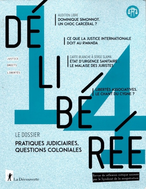 Ce dossier est consacré au poids de l’héritage colonial dans les pratiques judiciaires. Si la question peut sembler clivante, il s’agit ici, loin de tout dogmatisme, de reconnaître que juges et droit n’ont de cesse d’être confrontés à cette question protéiforme : de la manipulation des notions équivoques de « civilisation » et « d’universel » dans certains discours véhiculés par l’autorité judiciaire, aux traces laissées par l’administration coloniale dans la mise en œuvre du droit de la nationalité, en passant par la difficile articulation des pratiques de justice communautaire et des principes de procédure pénale française dans les territoires ultra-marins, la question du domaine du nous ne cesse d’apparaître. Dans le dessein d’ouvrir une réflexion sur certains impensés colonialistes et racistes mobilisés au quotidien au sein des institutions de justice, Délibérée a entendu, ici, emprunter le chemin sinueux de la critique d’un soi institutionnel qui demeure, à bien des égard, otage de son propre passé. Par ailleurs, outre les rubriques habituelles Délibérée et a donné carte blanche à Serge Slama qui a choisi d'interroger les états d'urgence permanent.